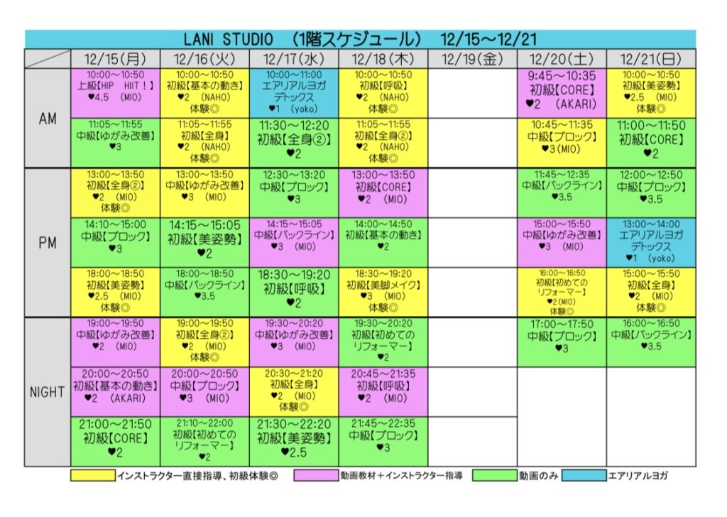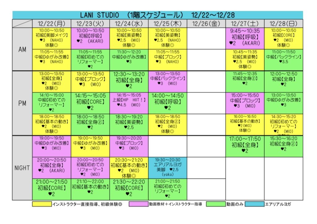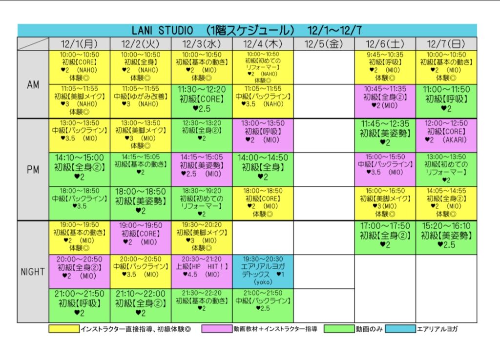 12月の1階スタジオ(LANI)のスケジュールを公開しました!