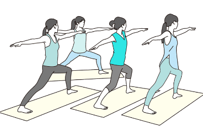 美脚ヨガ、美尻ヨガ、リラックスヨガなどテーマに沿ってレッスンを進めていきます。