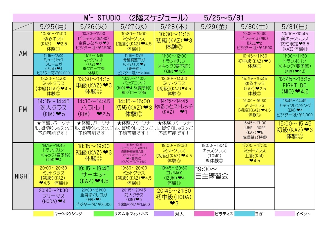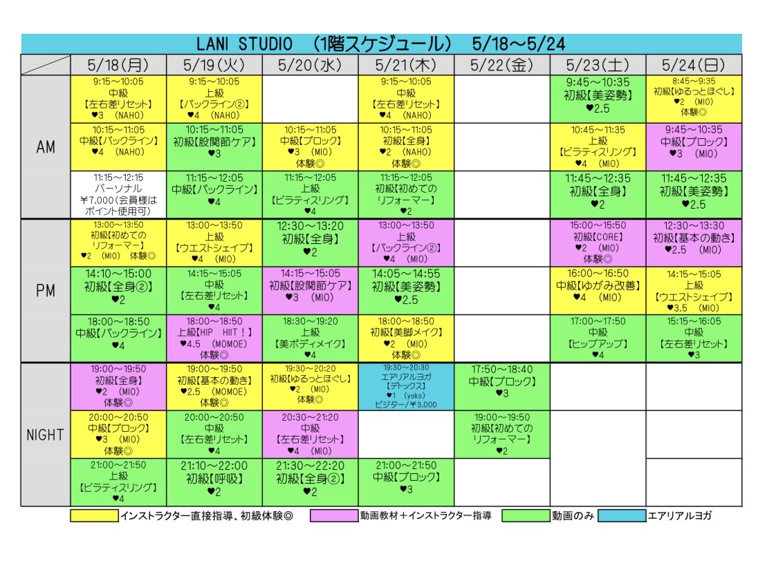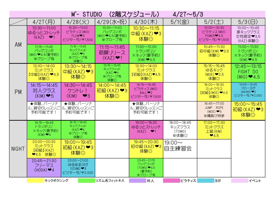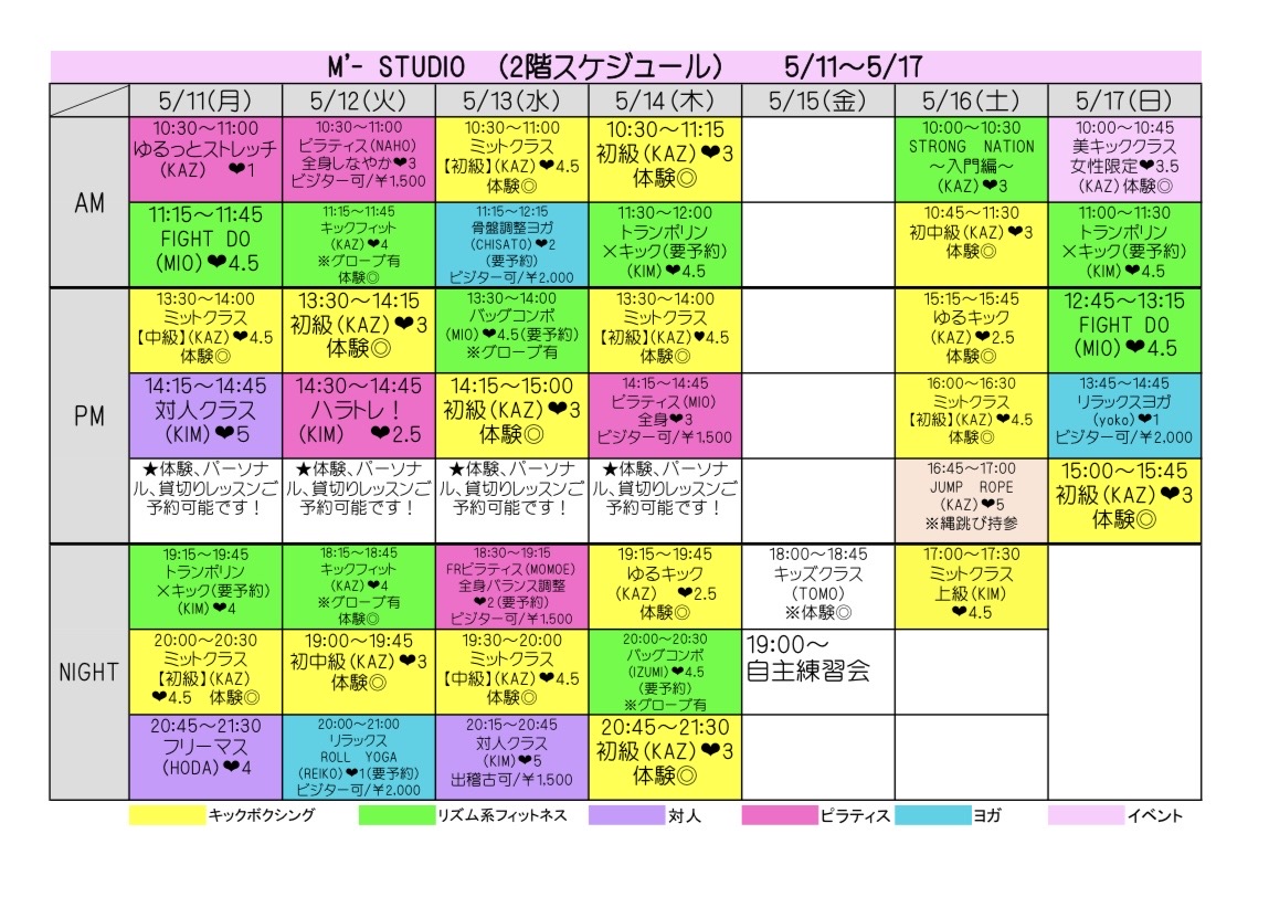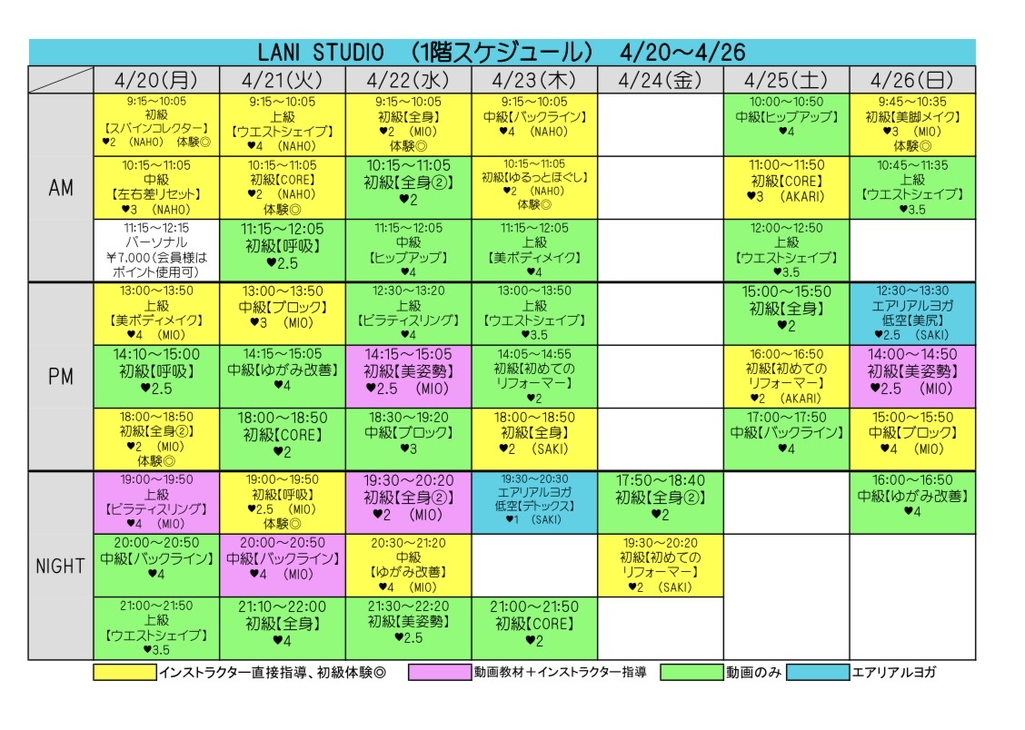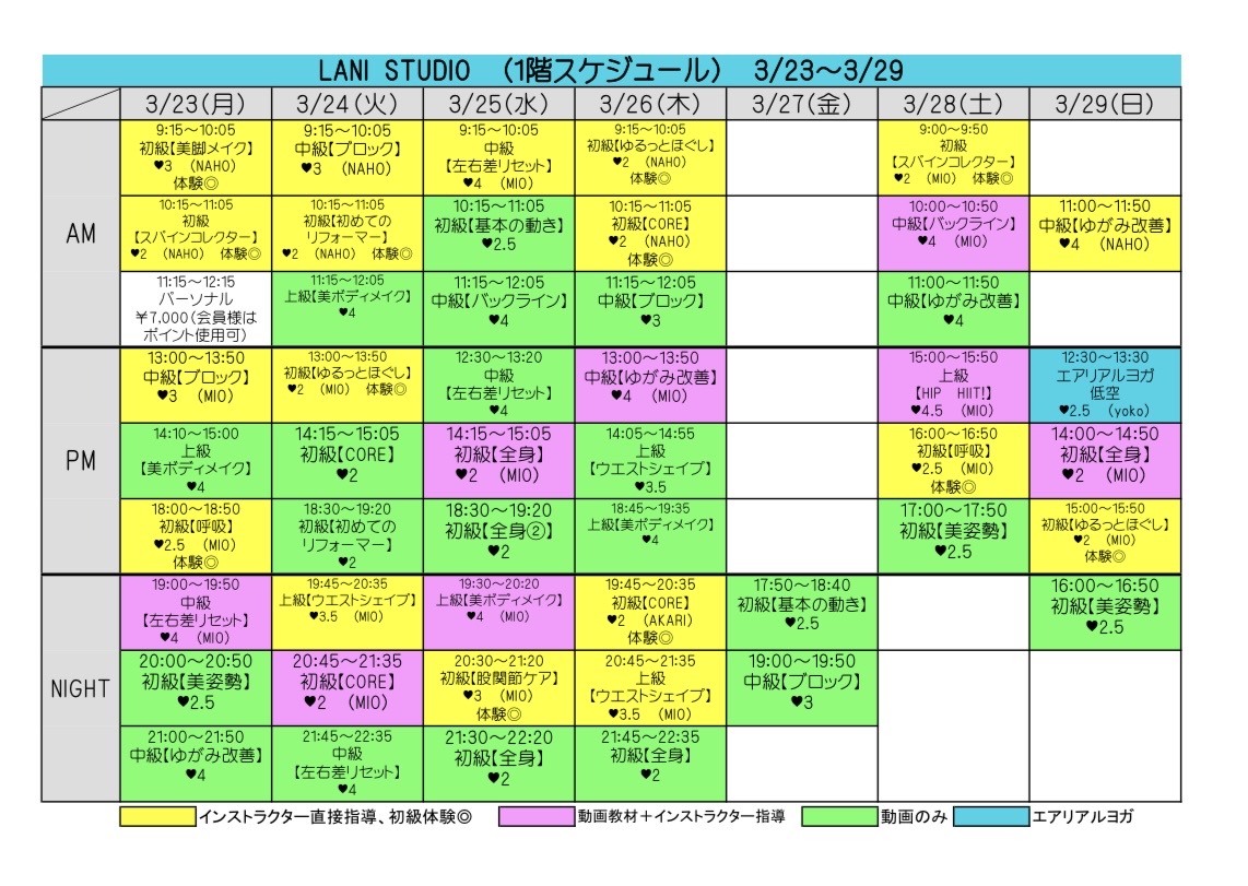 スケジュール表の「体験◎」と表記のあるクラスを体験いただけます。