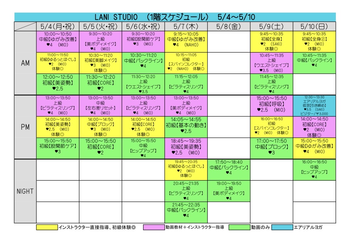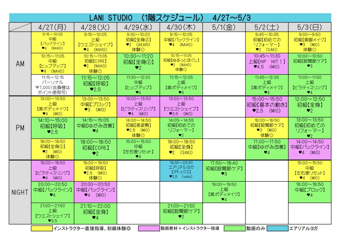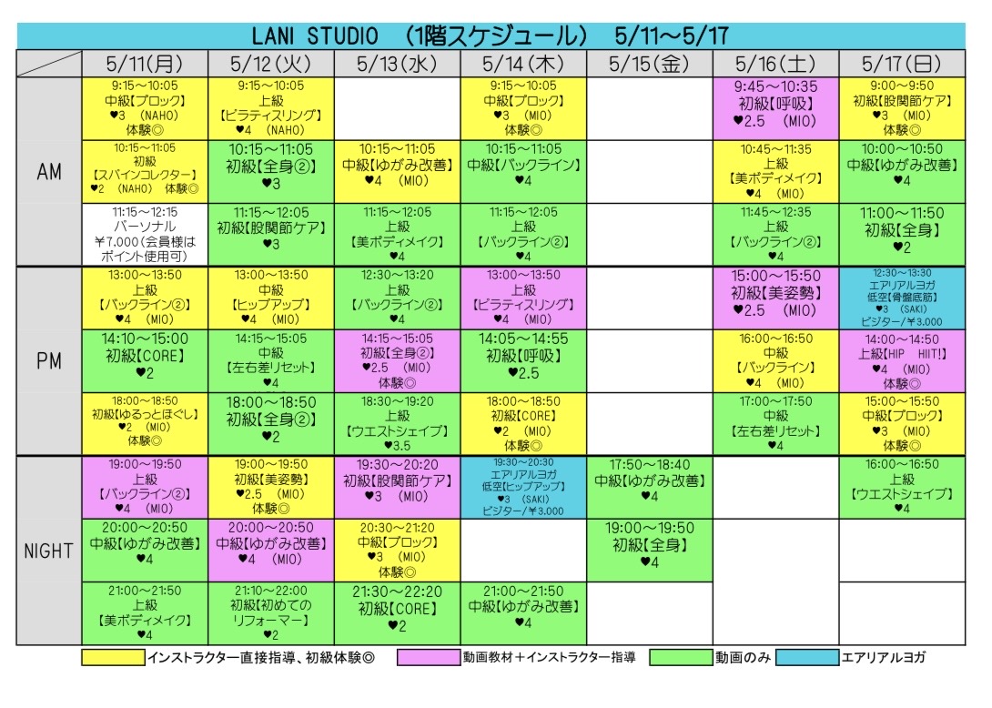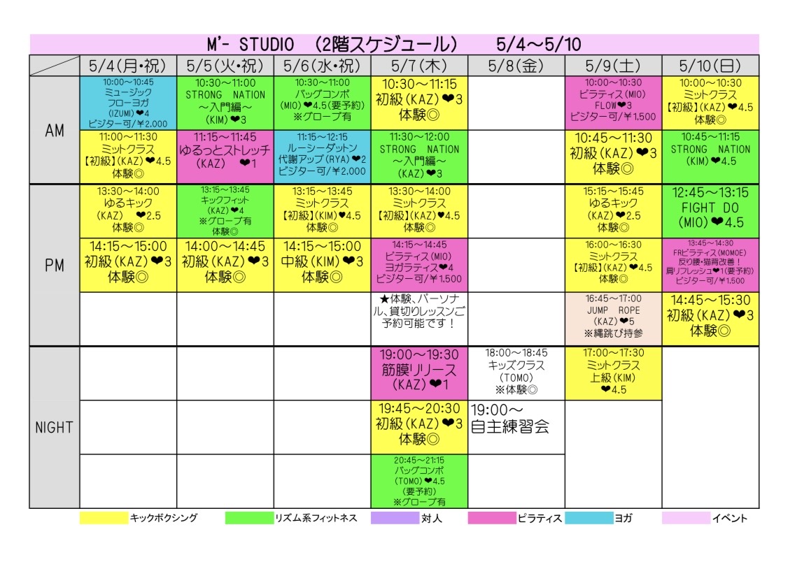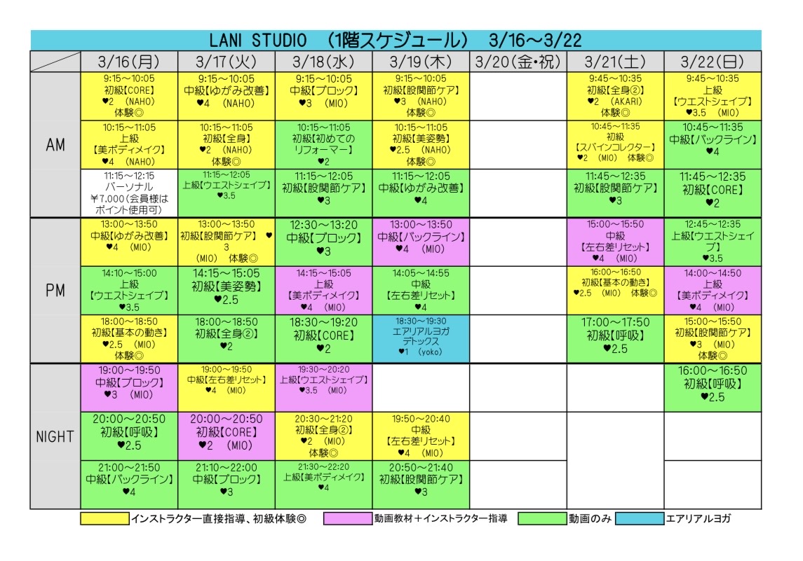 スケジュール表の「体験◎」と表記のあるクラスを体験いただけます。